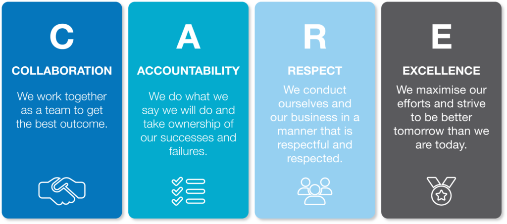 Our values — collaboration, accountability, respect, excellence — drive our culture. They guide our decision-making and set the standard for our teams, with safety as a core principle.
